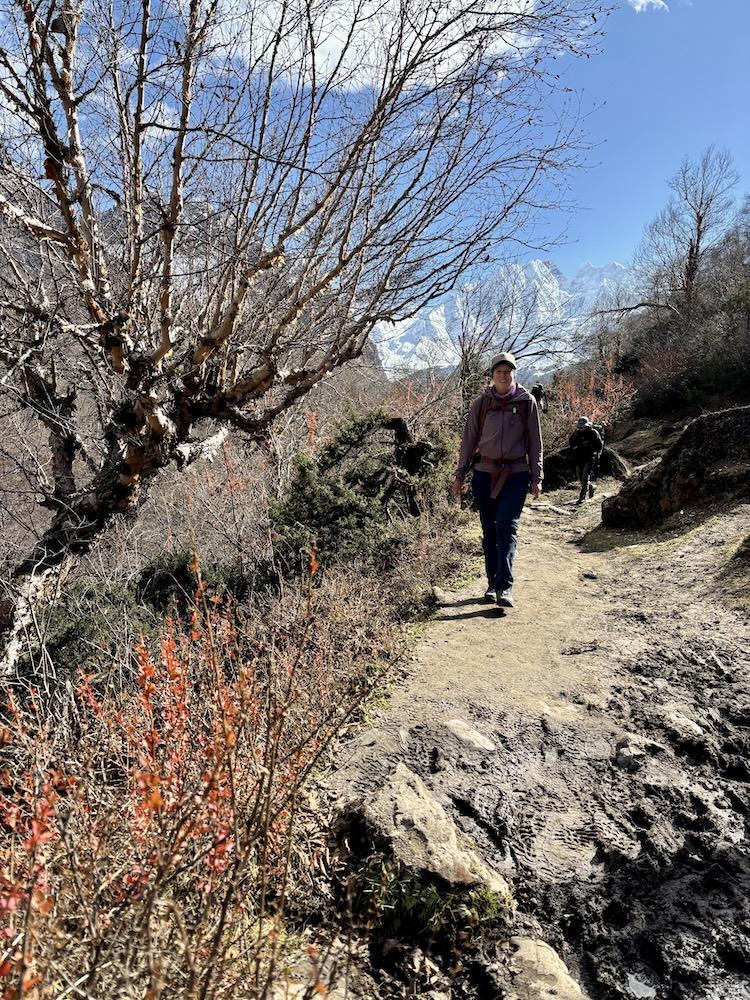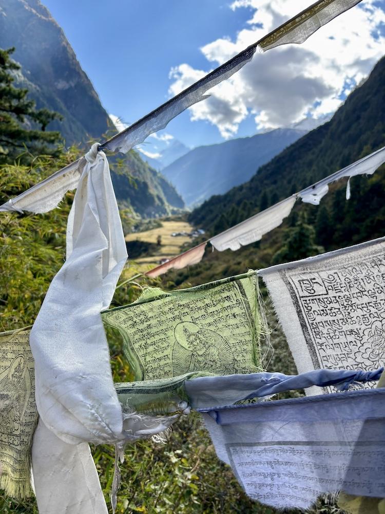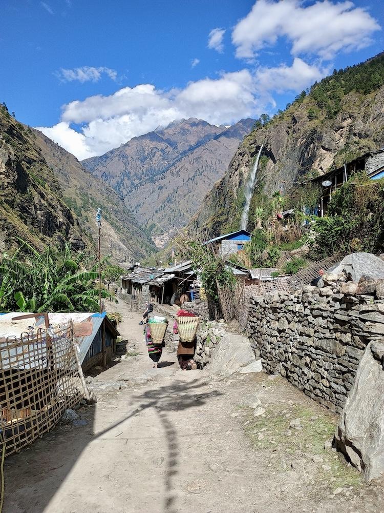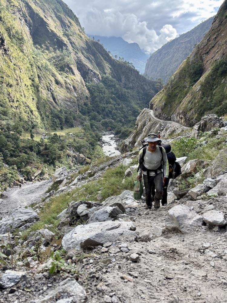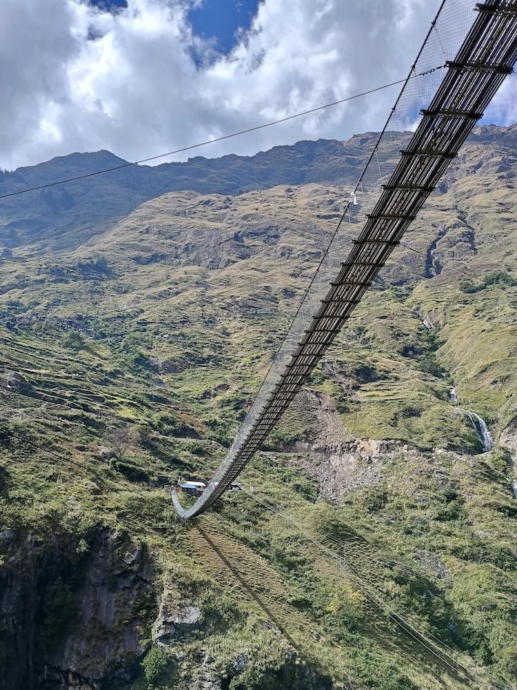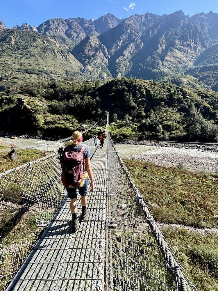 Von Maccha Khola folgt man dem Budhi Gandaki Fluss tiefer in das Tal hinein. Der Fluss begleitet die Trekker bis kurz vor dem Pass und wird im Verlauf der Wanderung mehrfach auf beeindruckenden Hängebrücken überquert. Die ersten Etappen führen über die kleinen Ortschaften Jagat, Deng und Namrung zunächst noch zügig bergauf. Die Tage sind lang: Acht bis zehn Stunden inklusive einer Mittagspause ist man in der Regel unterwegs. Auch wenn der nächste Ort meist nur 700 - 800 Höhenmeter höher als der vorherige liegt, liegt die Tagesleistung meist bei 1.200 - 1.500 Höhenmetern, da es immer wieder in Senken oder zum Fluss hinab und anschließend wieder bergauf geht.