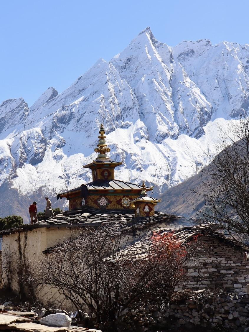 Ein lohnender Tagesausflug, bei dem man das erste Mal die Luft über 4.000 m Höhe schnuppert, ist die Wanderung zum Kloster Pungyen Gompa. Das über 500 Jahre alte Kloster liegt auf einem wunderschönen Plateau auf 4.000 m Höhe unterhalb des Mount Manaslu. Das Kloster gewährt einen kleinen Einblick in die Kultur der Buddhisten in dieser Region. Auf der gesamten Wanderung hat man einen beeindruckenden Blick auf den markanten Doppelgipfel des Manaslu und seine herabfließenden Gletscher.