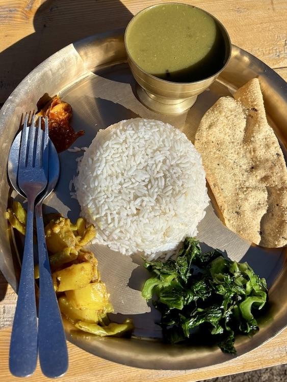 Die Unterkünfte auf dem Manaslu Circuit Trek sind “Tea Houses” genannte Gasthäuser, die es in jedem Dorf entlang der Strecke gibt. Hier gibt es einfache private Zimmer und geteilte Sanitäranlagen. Diese bestehen i.d.R. aus asiatischen Hockklos und Waschbecken im Flur. Je nach Höhenlage gibt es ggf. noch eine kalte oder warme Dusche, die meistens bezahlt werden muss. Die Tea Houses dienen auch der Verpflegung an der Strecke. Abendessen und Frühstück nimmt man in seiner Unterkunft ein und auch mittags wird unterwegs ein Tea House zum Mittagessen angesteuert. Die Karte sieht in fast jeder Lodge gleich aus. Allem voran steht das nepalesische Nationalgericht Dal Bhat, eine große Platte, auf der man Reis, Linsensuppe - das Dal -, ein Kartoffelcurry und je nach Wunsch ein weiteres Curry mit Gemüse oder Hühnchen bekommt. Dazu gibt es eine große Auswahl an Curries, gebratene Nudeln oder Reise, aber auch westliche Gerichte wie Spaghetti oder Pizza.