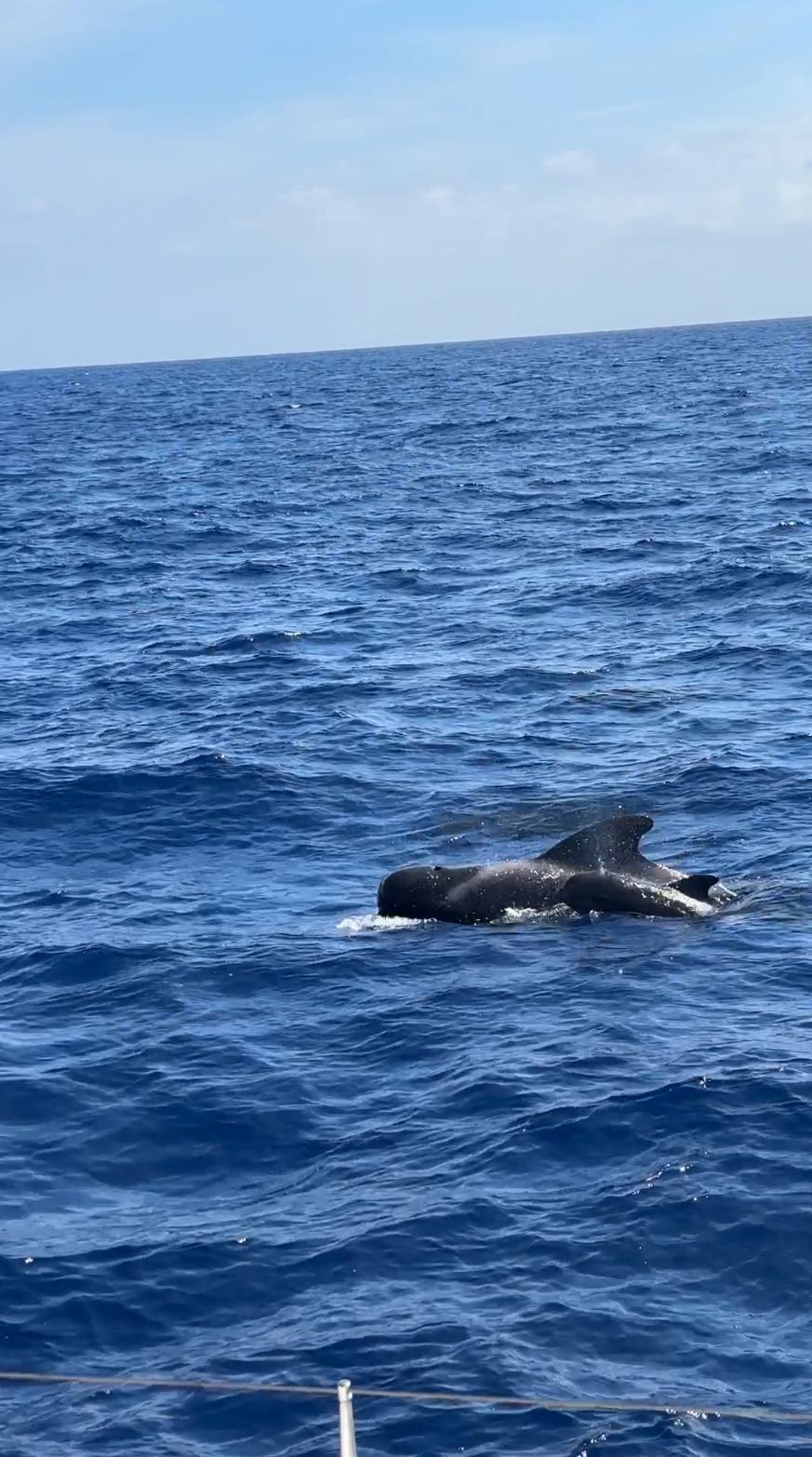Laut unseres Skippers und Walexperten gibt es von den Grindwalen jedoch eine stabile Kolonie, die das ganze Jahr über zwischen dem Süden und La Gomera lebt. Denn hier, in bis zu 2.500 Metern Tiefe, befindet sich ausreichend ihrer Nahrung – die sich vorwiegend aus Kopffüßlern wie Octopussen zusammensetzt. Aus diesem Grund wurde dieses Gebiet auch von der Meeresschutzorganisation „Mission Blue“ zum „Hope Spot“ erklärt, um die natürlichen Werte dieses Meeresgebiets hervorzuheben und zu schützen.