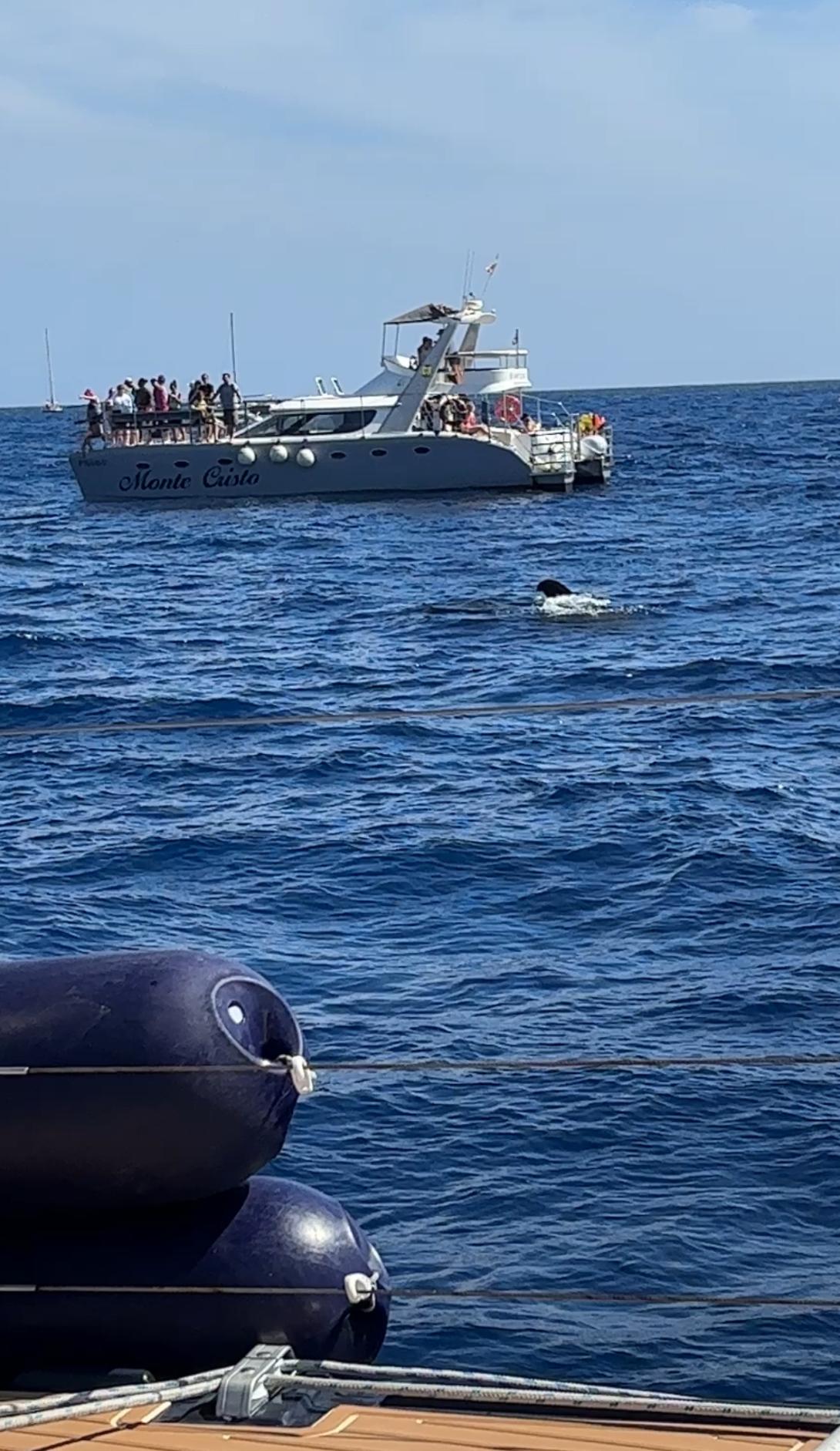 Plötzlich taucht eine riesige schwarze Flosse auf