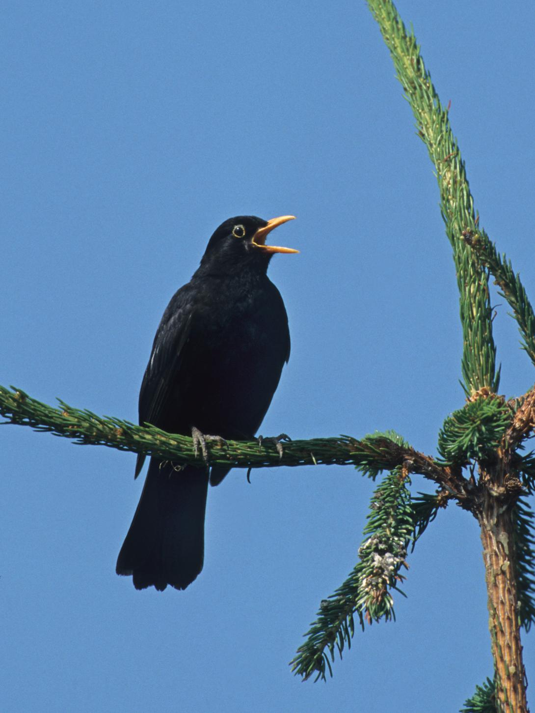 Die Amsel (Turdus merula) zählt zu den bekanntesten Singvögeln hierzulande. Ihr klangvoller, oft melancholischer Gesang erklingt abends von hohen Bäumen oder Hausdächern. Damit sie sich wohlfühlt, braucht sie naturnahe Gärten mit heimischen Sträuchern als Rückzugsort und Nahrungsquelle. Auch städtische Grünflächen sollten naturnah gepflegt und insgesamt mehr Grün in die Städte gebracht werden. Ihr Wahlspruch: „Beeren statt Beton!“ Zwar gilt die Amsel aktuell nicht als gefährdet, doch das Usutu-Virus, das sich in heißen Sommern rasch ausbreitet, hat ihr in den letzten Jahren immer wieder zugesetzt.