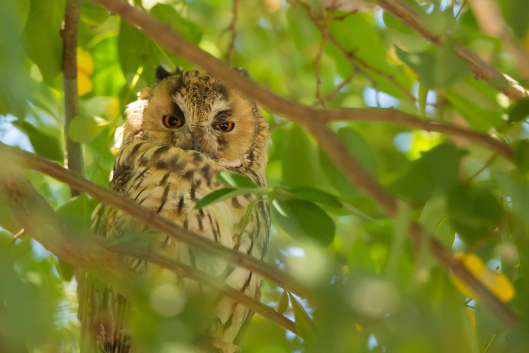 Die Waldohreule (Asio otus) erinnert an einen kleinen, schlanken Uhu. Ihre charakteristischen „Ohren“ sind in Wahrheit Federbüschel ohne Hörfunktion. Sie bevorzugt lichte Wälder und jagt in abwechslungsreichen Landschaften nach Wühl- und Spitzmäusen, ähnlich wie die Schleiereule. Ihr Nest baut sie meist nicht selbst, sondern nutzt verlassene Nester von Krähen oder Greifvögeln. Alte Bäume – egal ob im Wald, Park oder auf Friedhöfen – sind für sie unverzichtbar. Bei der nächtlichen Jagd gleitet sie lautlos durch die Luft und ortet ihre Beute mit feinem Gehör. Ihr Motto: „Ohren auf, Vielfalt an!“