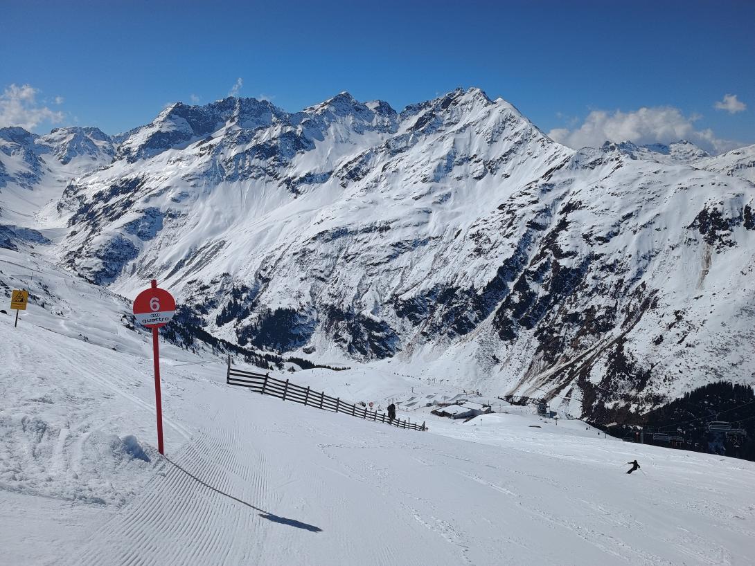 Unser Skilehrer Sebastian hat an diesem sonnigen Skitag genauso viel Spaß wie seine motivierte Gruppe. Er will uns die besten Pisten des Skigebiets zeigen und dazu gehört auch das Teilstück des legendären Skirennens “Der Weisse Rausch”, das jedes Jahr zum Saisonende stattfindet. 555 Athleten stürzen sich vom Vallugagrat in einem Massenstart eine 9 km lange unpräparierte Strecke hinab, erklärt Sebastian. Größte Herausforderung ist dabei neben den präparierten Hängen ein 150 Meter langer, steiler Gegenanstieg, an dem schon so mancher Athlet gescheitert ist. “Spätestens an der zweiten Stange müsst Ihr laufen lassen, sonst kommt ihr über den Gegenanstieg nicht rüber", erklärt er und ist schon unterwegs in Richtung Tal. Wir folgen ihm und bemühen uns, unsere Schwünge ähnlich elegant in den Schnee zu ziehen. Zum Glück müssen wir nur durch eine kleine Senke und legen den Großteil des steilen Anstiegs mit einem kleinen, steilen Schlepplift zurück. Dann geht es weiter über weite Pisten zurück in Richtung St. Anton.