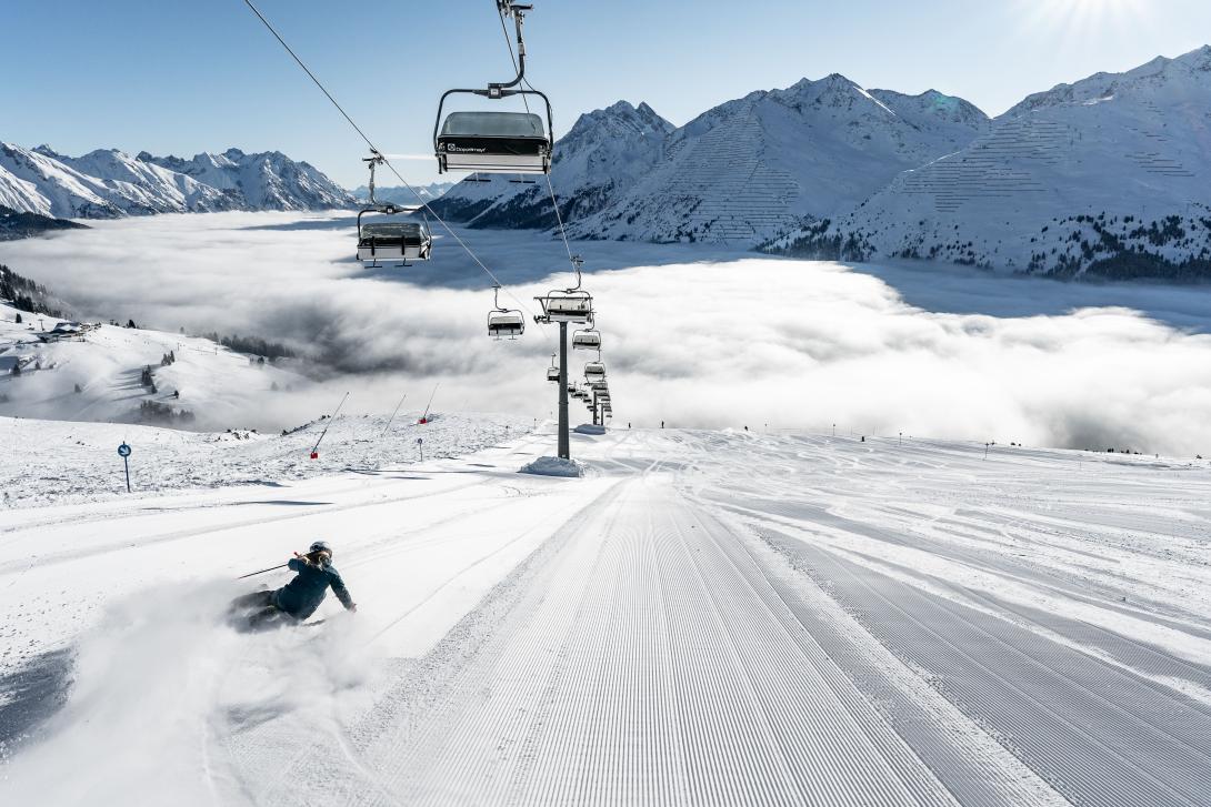 Zurück im Tal führt Sebastian uns zur Rendlbahn, die auf den Berg auf der gegenüberliegenden Talseite führt. Der Rendl ist per Seilbahn und Skibrücke mit dem restlichen Skigebiet verbunden, aber immer noch ein Geheimtipp. Hier ist deutlich weniger los als an Galzig und Gampen, dabei stehen die Pisten der anderen Seite in Nichts nach. “Hier kommen die Einheimischen am liebsten her, wenn sie in Ruhe ein paar Abfahrten machen wollen”, erklärt Sebastian. Vor allem nachmittags, wenn die Westhänge des Rendls in der Sonne liegen, sind die aufgefirnten Abfahrten der pure Genuss. Es lohnt sich, mit einem Skiguide unterwegs zu sein, denn der weiß genau, wo zu welcher Tageszeit der beste Schnee zu finden ist.