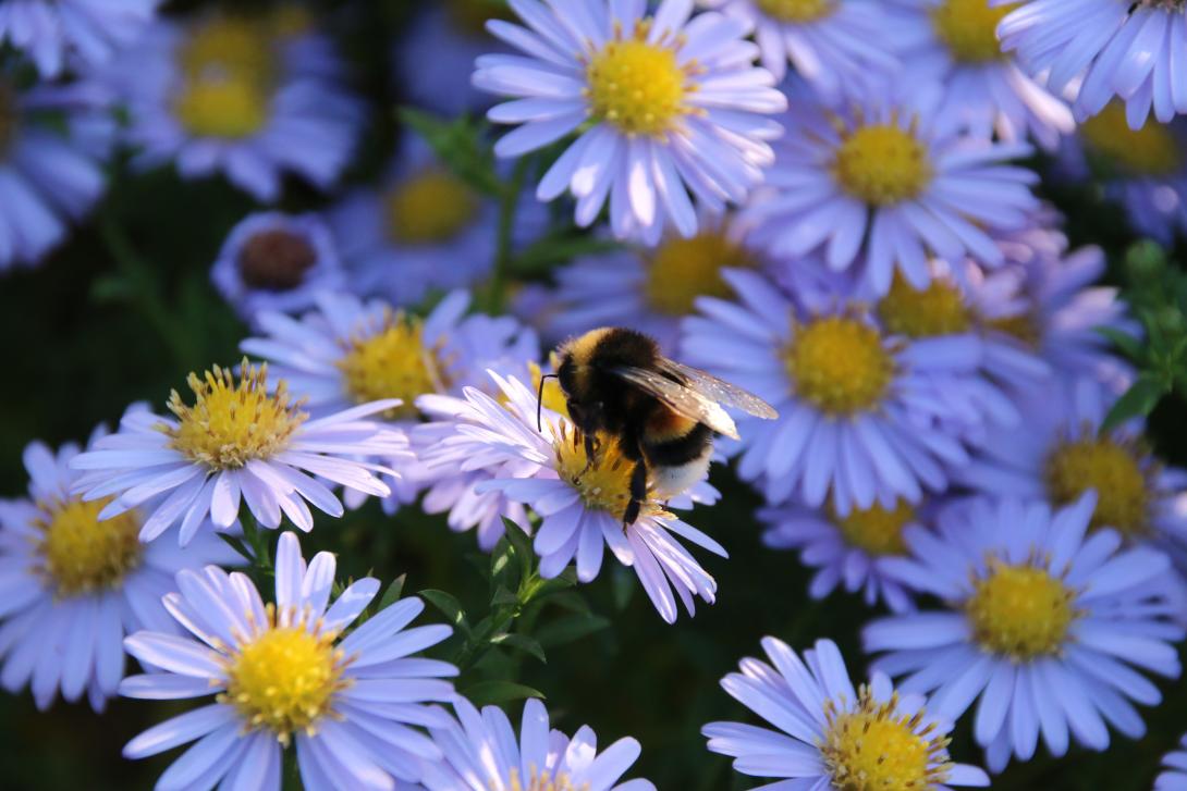 Insekten lieben abgeblühte Stauden. In den hohlen Stängeln und an den Blattachsen von Sonnenblumen und Disteln richten Sie sich ihre Winterschlafstuben ein. Solitärbienen, Marienkäfer und Ohrwürmer nehmen diese Quartiere gerne an. Die meisten Arten überwintern nicht als erwachsenes Tier, sondern gehen als Ei, Larve oder Puppe in die Winterstarre. Im Frühling schlüpft dann die neue Generation aus den trockenen Stauden. Erst dann ist der Zeitpunkt für den Rückschnitt gekommen.